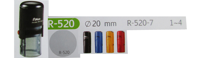 Mộc dấu tròn Shiny R520 có đường kính 20mm, thon, gọn, mực đẹp, tươi, lâu phai. có 4 màu : xanh , đỏ , đen , vàng.